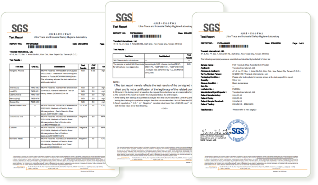 To enhance product safety and quality standards, Translab International Limited collaborates with pharmaceutical factories certified by PIC/S GMP, Food GMP, ISO22000, HACCP and HALAL. Quality control and sampling are conducted on raw materials, semi-finished, and finished products, ensuring the implementation of standardized safety procedures. Products are manufactured with strict international standards, and with dedicated production equipment in independent facilities.
